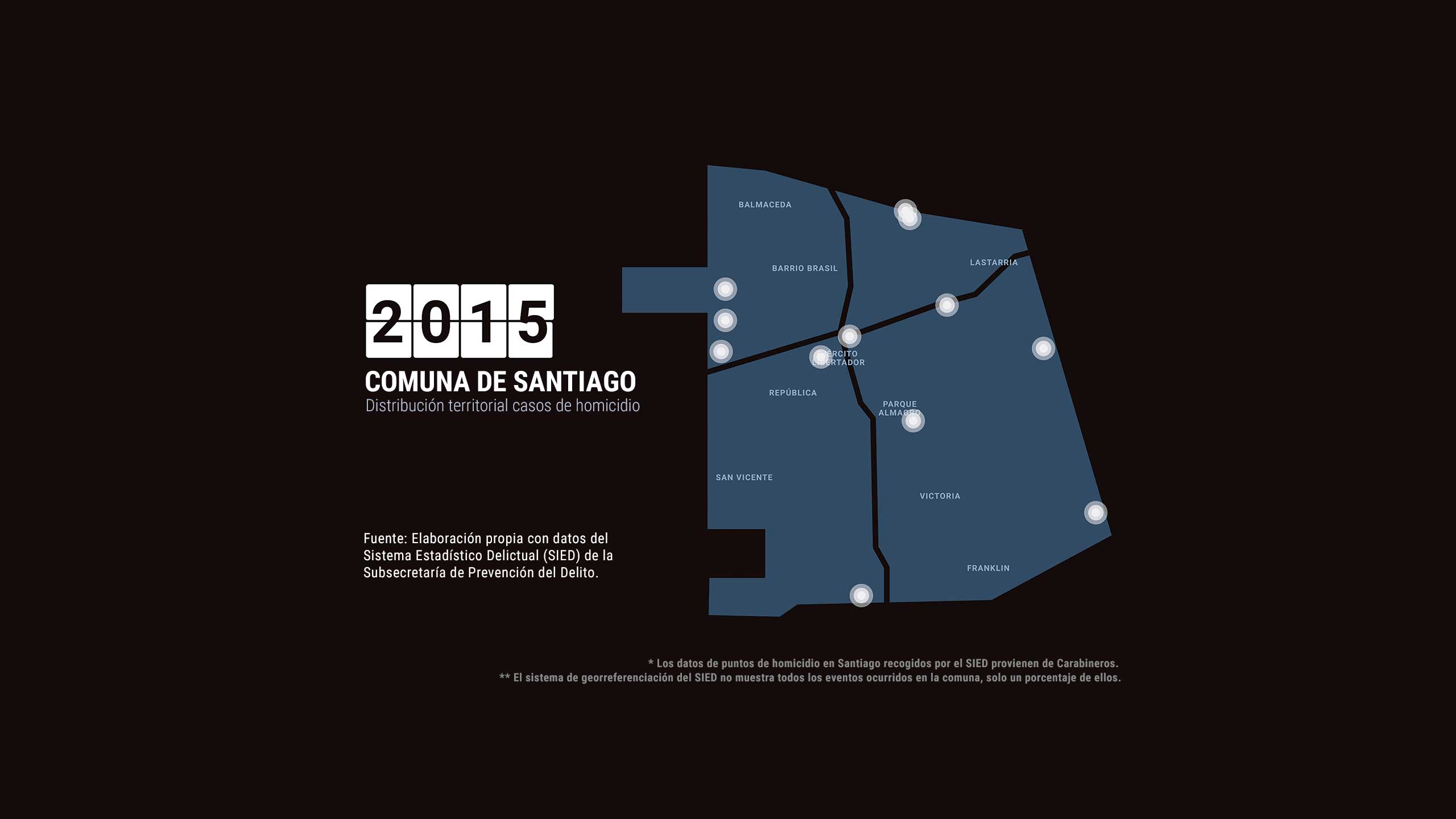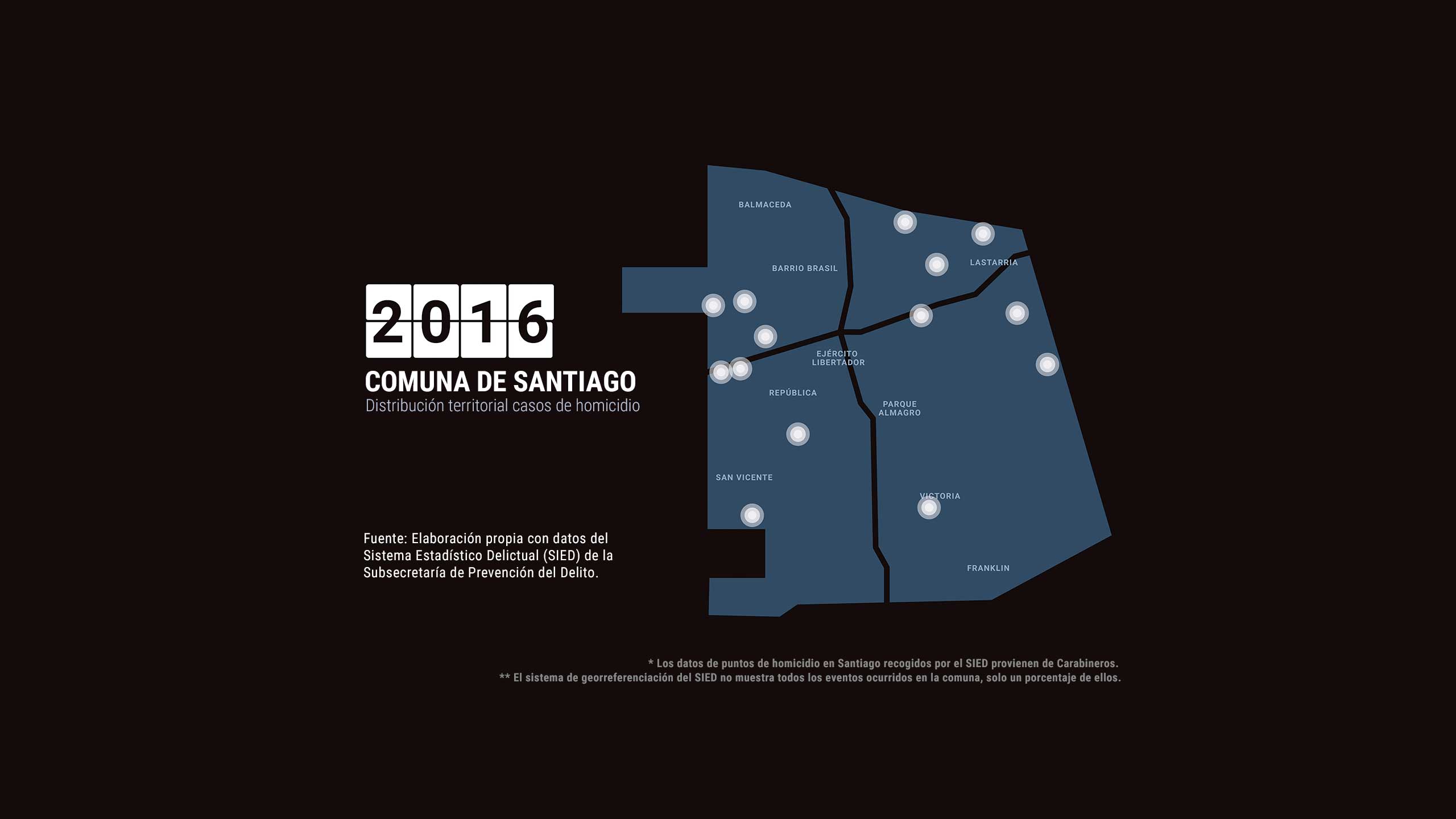Esta investigación fue complementada con un estudio publicado en 2021 y titulado “Informe Estadístico: Homicidio en Chile 2016-2020” de la División de Estudios, evaluación, control y desarrollo de la gestión del Ministerio Público, en el que se presenta un detallado trabajo de análisis de los homicidios consumados en el país en ese tramo de tiempo. También se utilizaron como respaldo los boletines anuales que publica la institución, desde 2010 al primer semestre de 2022.
